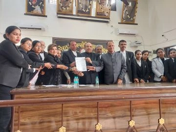 की। ज्ञापन सौंप रहे अधिवक्ताओं ने बताया